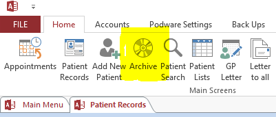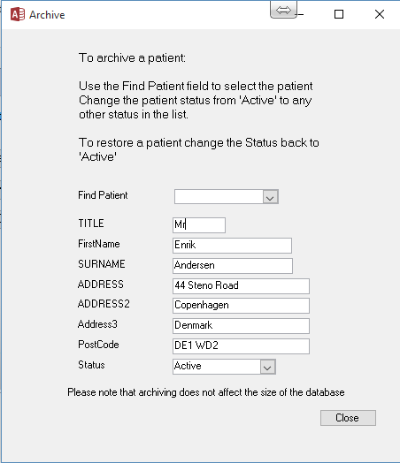 Archived patient records don't get deleted - the records are still readable by restoring a patient (change the 'Status' to Active)