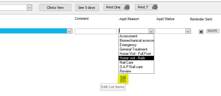 For example in the pic below we're looking at the list of items available for the Appt Reason field: