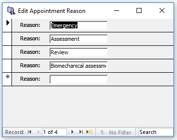 Appointment reasons can be added, changed or deleted from the form shown above.