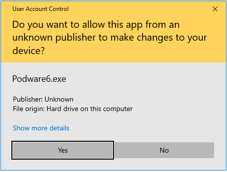Click Yes on the user account control message that appears: