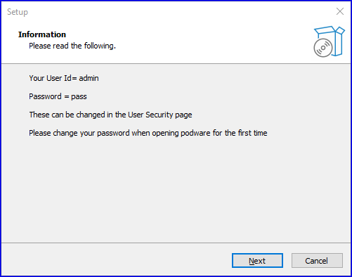The default login details are: