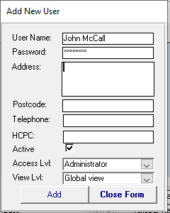 The "Access Lvl" and "View Lvl" fields will determine whether or not the person logging in can access the Manage Users and Finance screens.