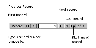 The navigation buttons are located at the bottom of the window in Datasheet or Form view. You can use these buttons to quickly move between records